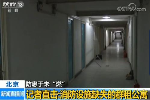 在北京市永順鎮(zhèn),消防員來到一棟四層建筑進行檢查。據(jù)了解,這里此前是一個貨運企業(yè)的員工宿舍,后來一部分被當成公寓對外租賃。記者初步估算了一下,這棟建筑每層有50多間房,4層一共有200多戶。然而這樣一棟人員密集的建筑,其內(nèi)部的消防設施卻缺損嚴重。記者看到,這里的疏散通道與樓梯間直接連通,沒有防火門進行分隔,通道內(nèi)缺乏安全疏散指示標志等基本消防設施。一旦發(fā)生火災,煙氣將直接灌入疏散通道,阻礙逃生。